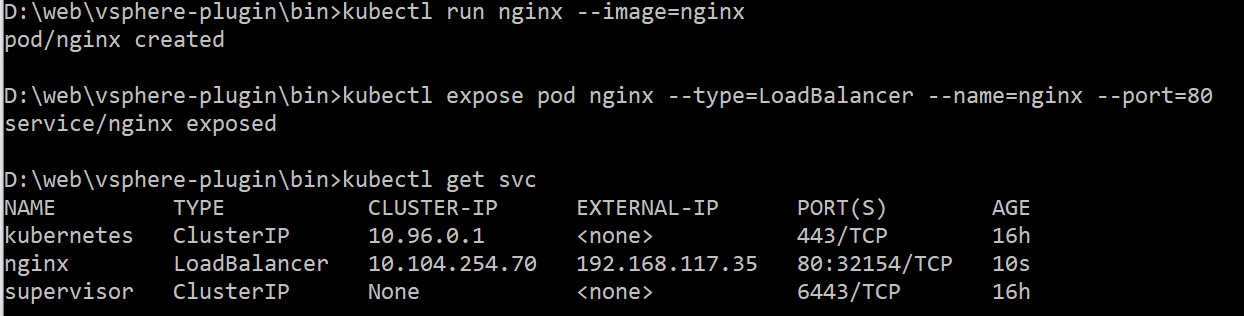 Now lets deploy an application, which we really use the standard kubectl commands that you are familiar with, below you see me deploying a nginx application and creating/exposing the service port 80