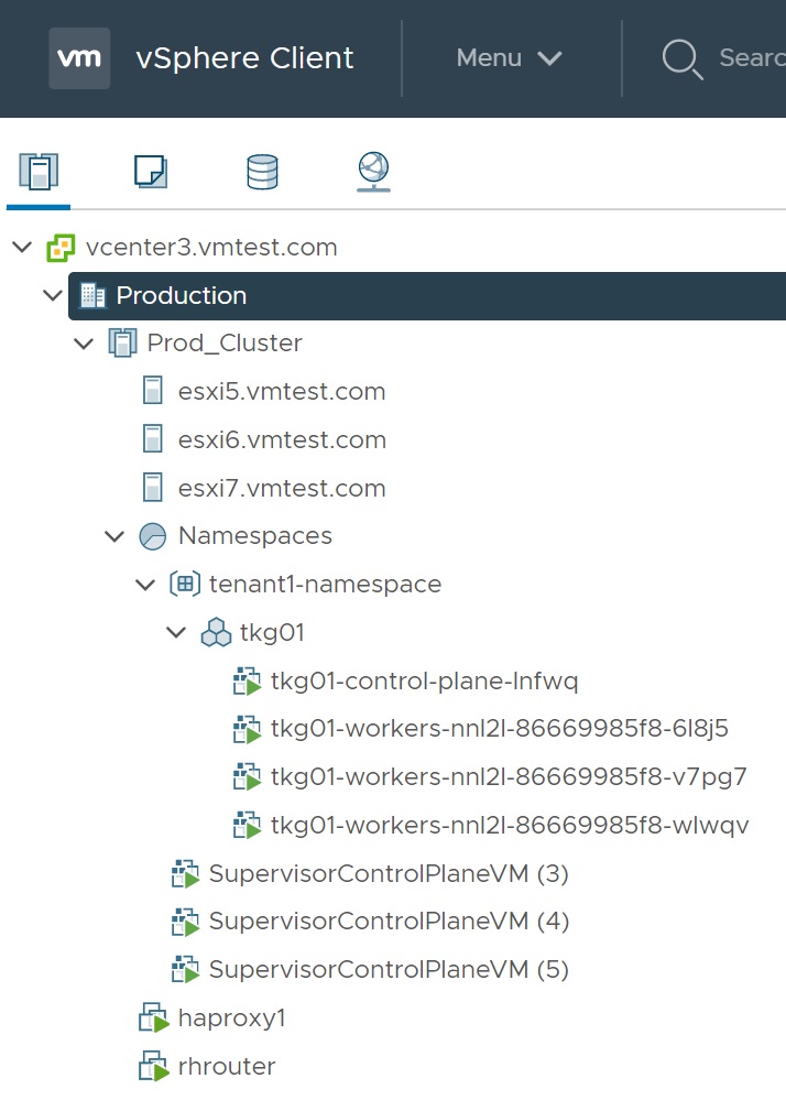 In this section we are going to setup a Kubernetes cluster using the vCenter Workload Manager, however we have to prepare a number of tasks first, I had to setup a RedHat server (rhrouter) to act as a network router (you also can use a manageable switch, virtual router software), we then setup the HAProxy VM (haproxy1) and finally get to setup the Kubernetes cluster. Below is what we will finish up with, I am using a 3 node basic cluster with HA and DRS enabled.