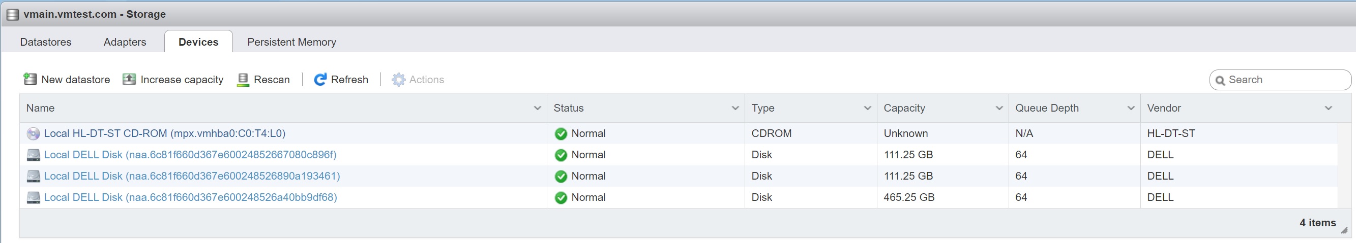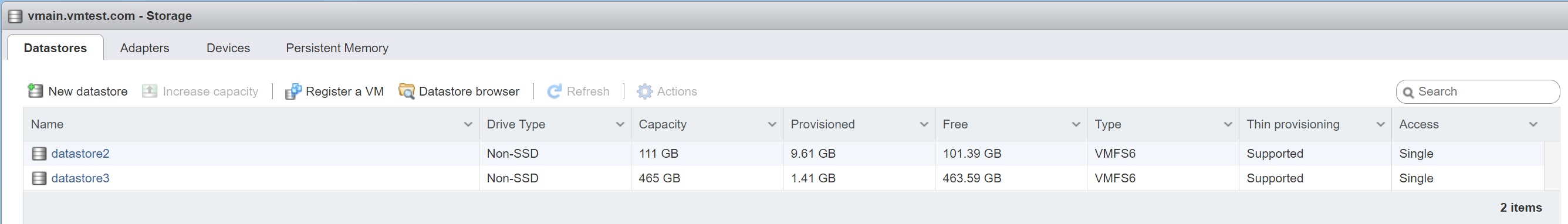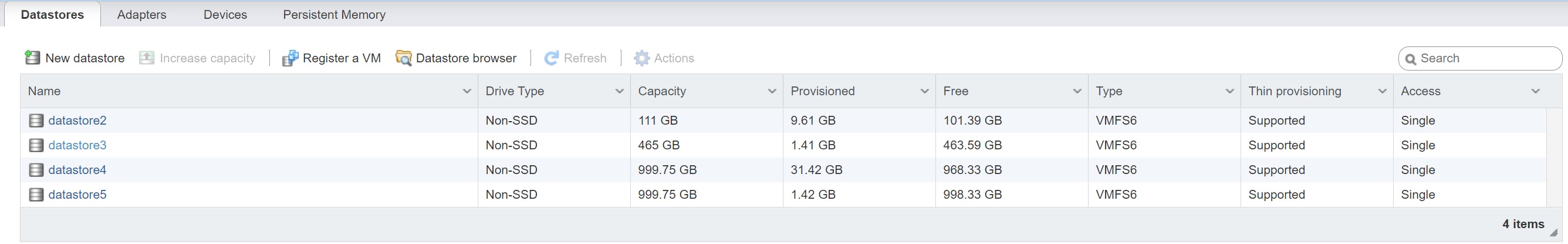 Once you have a free device you can create a datastore on it which then means its available for virtual machines to be created on it, as you can see below I have two datastores