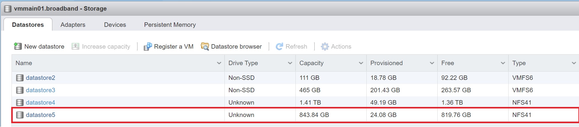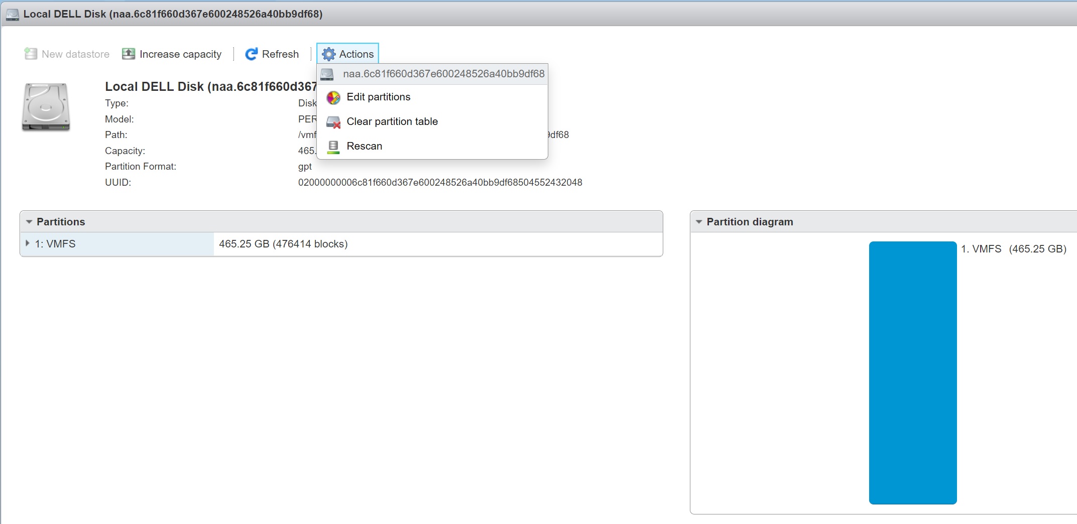 Next we can create datastores on the devices which means that they will be available to host VM's on them, you can either create datastores from the devices screen or the datastores screen, in my case I am creating a new datastore