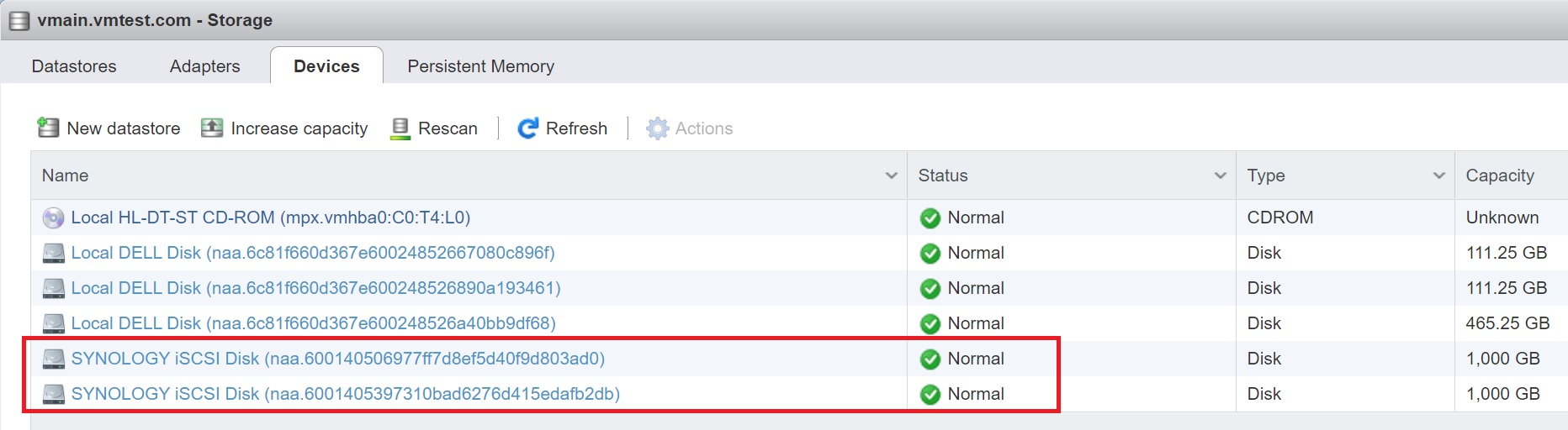 I have setup a couple of LUN's in my Synology SAN, and setup the targets to allow the ESXi server to connect, you can using mapping to secure the LUN's making sure only specific ESXi servers can access the specific LUN's.
