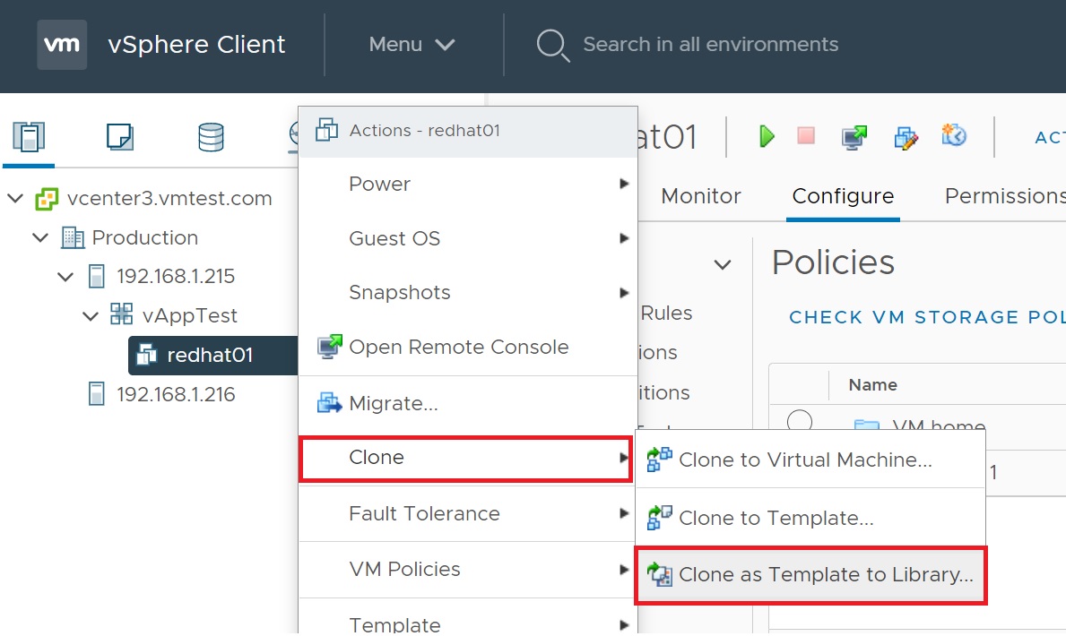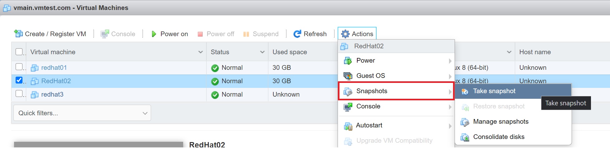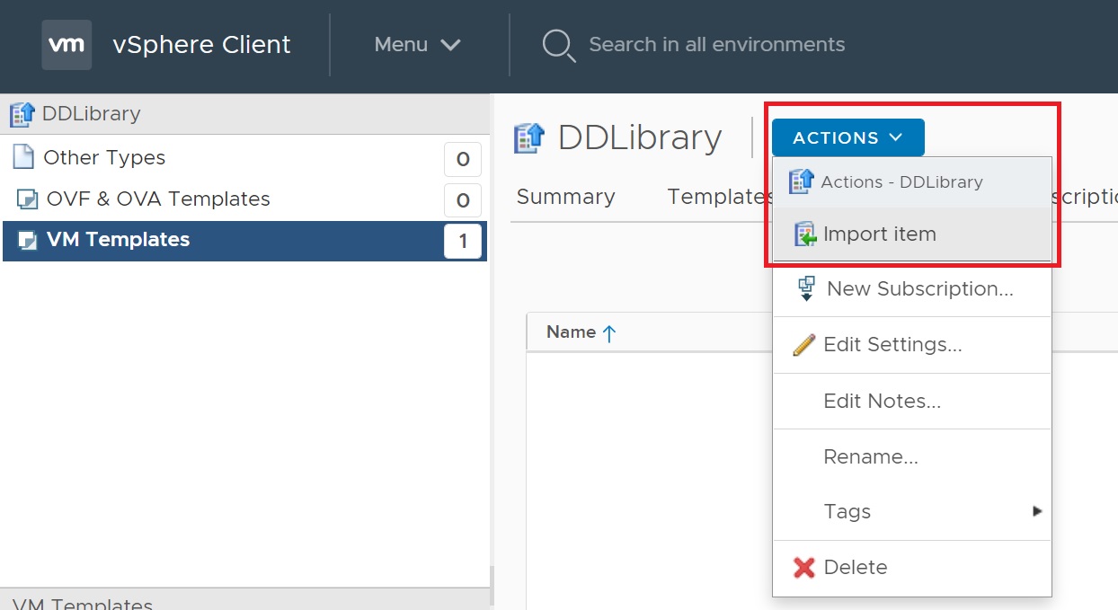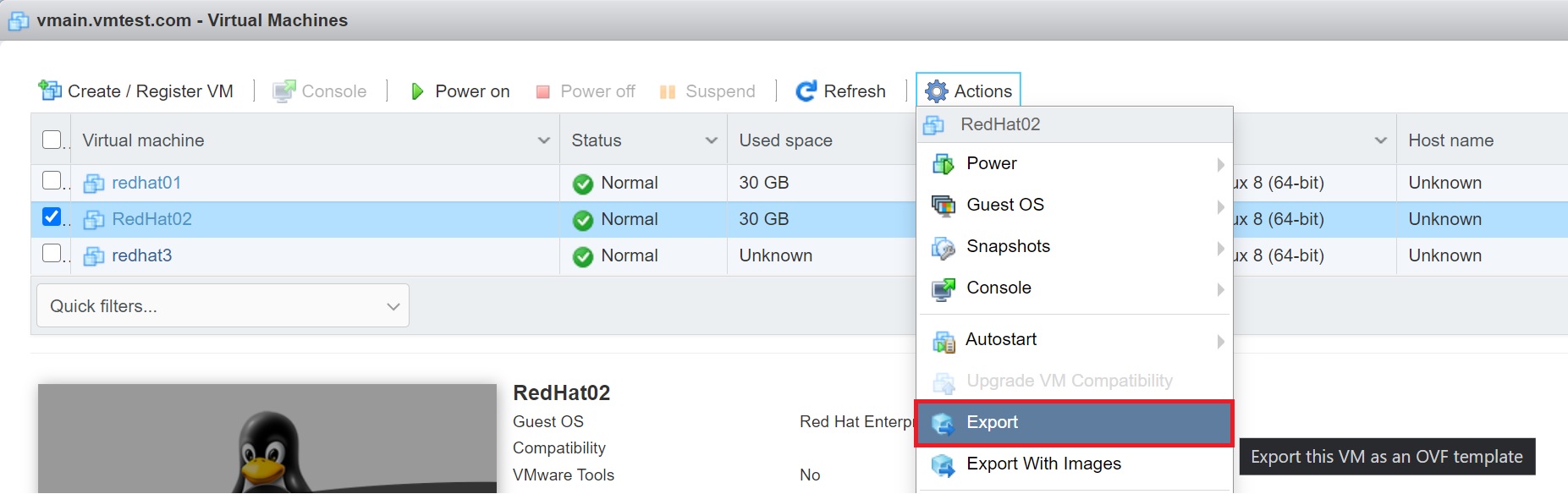 Generally you use vCenter to create and manage VM templates (I will cover vCenter in greater detail in another section), however its entirely possible to create a template using the web client, highlight the VM and from the actions drop down select export