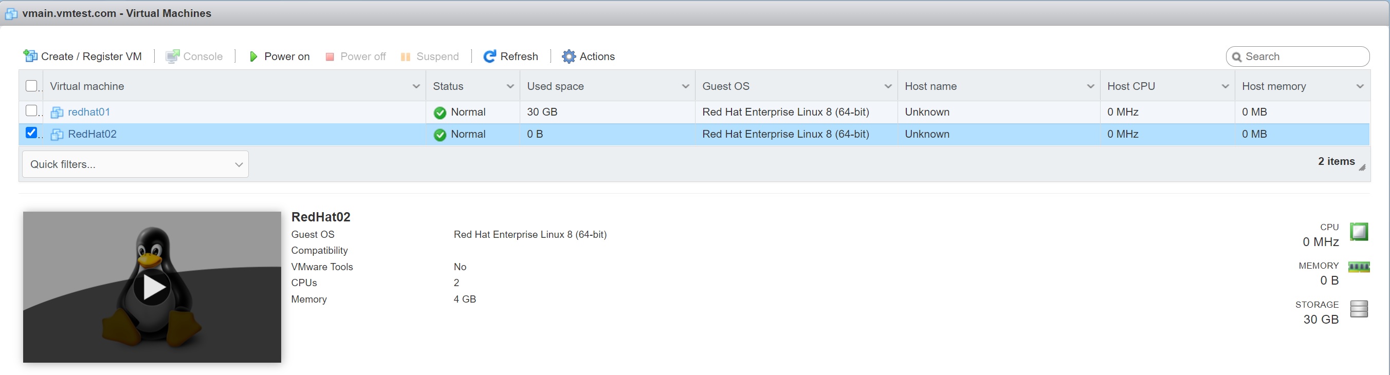In the virtual machines main screen which lists all the virtual machines that have been created you will see the newly created RedHat 8 VM