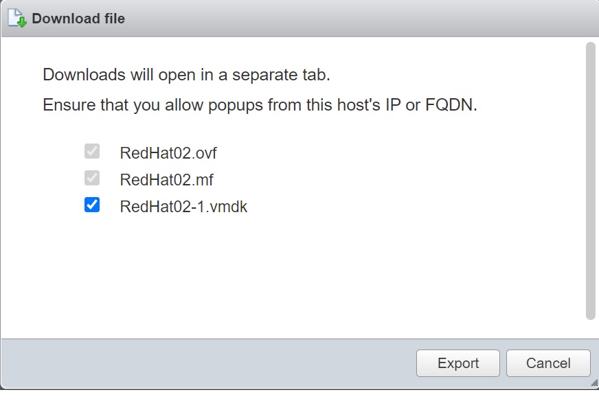 Three files will be created the ovf, mf and the vmdk files, if you selected the export with images you get a ISO file that is created