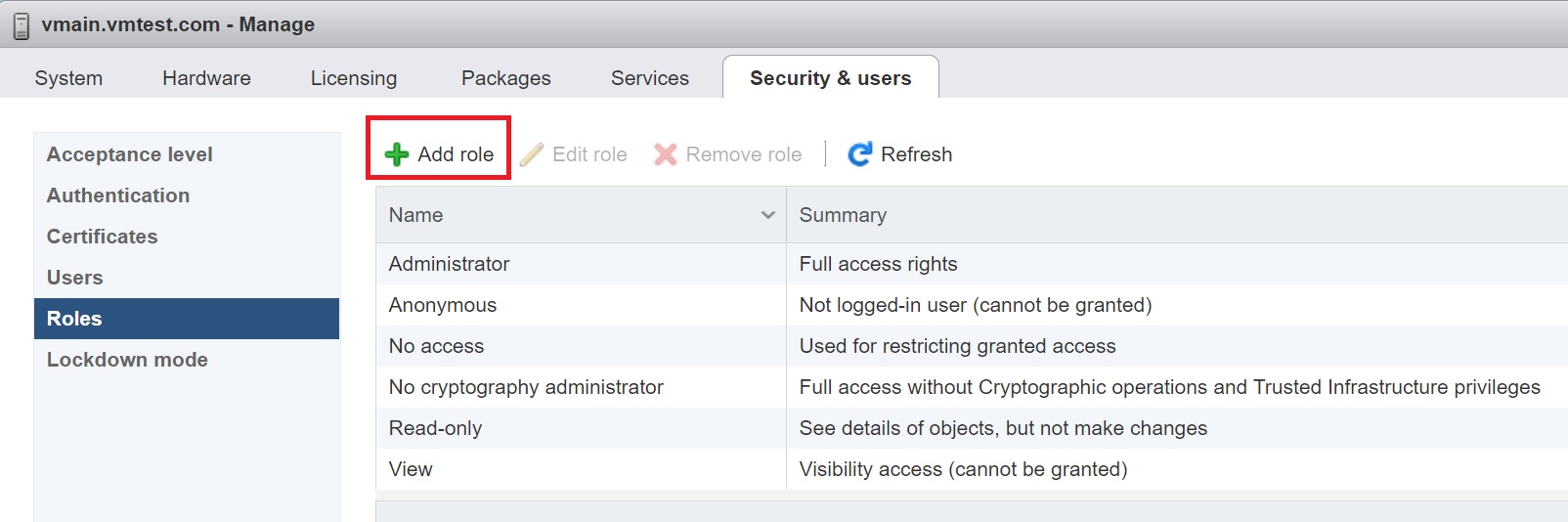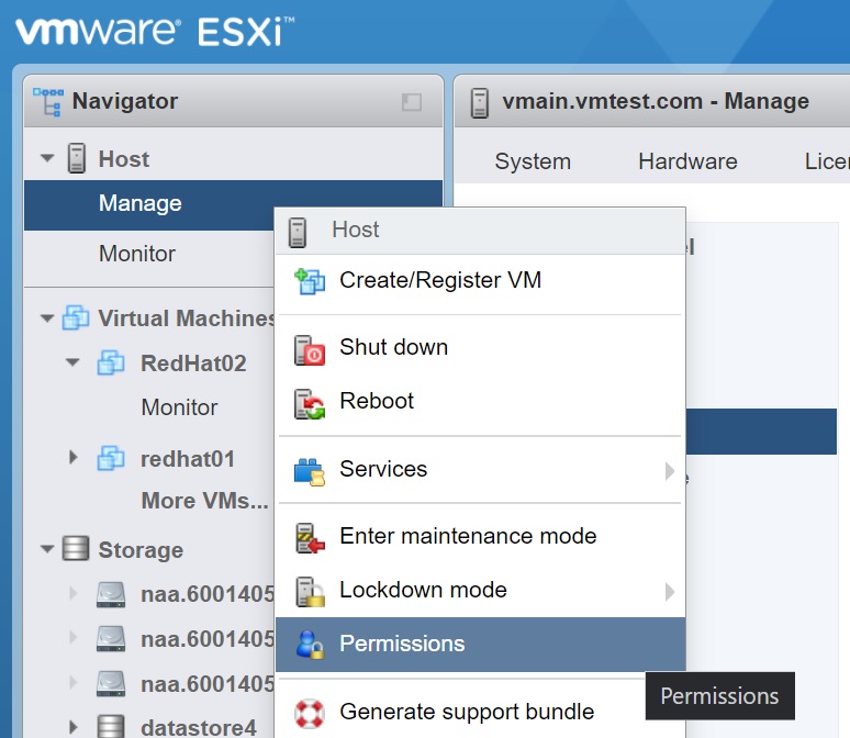 User and Roles can be managed from the ESXI host directly, using thew manage screen and the Security & Users tab, from here you have two sections called Users and Roles