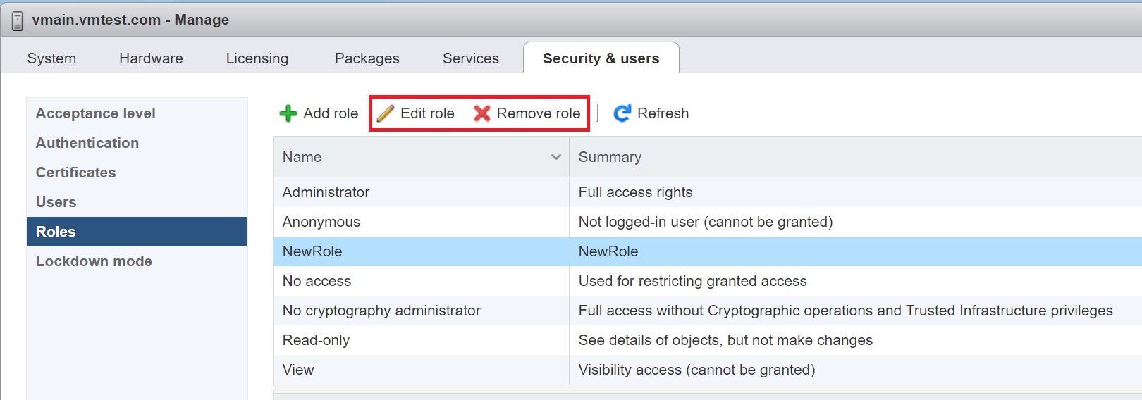 As you can see the new role appears at the bottom, with a newly created role you can either edit or remove it