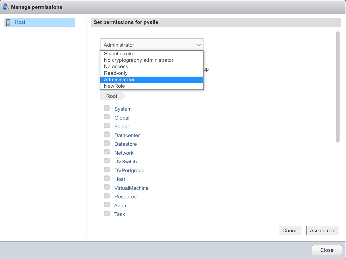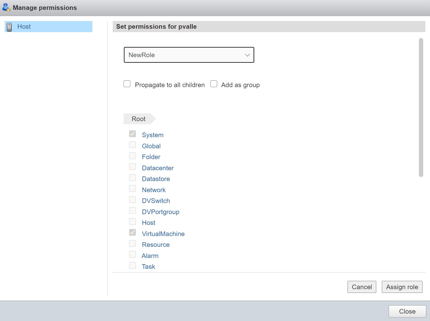 | Datacenter Administrator | This role allows you to create datacenter objects but you have very limited access with VM's. | |
