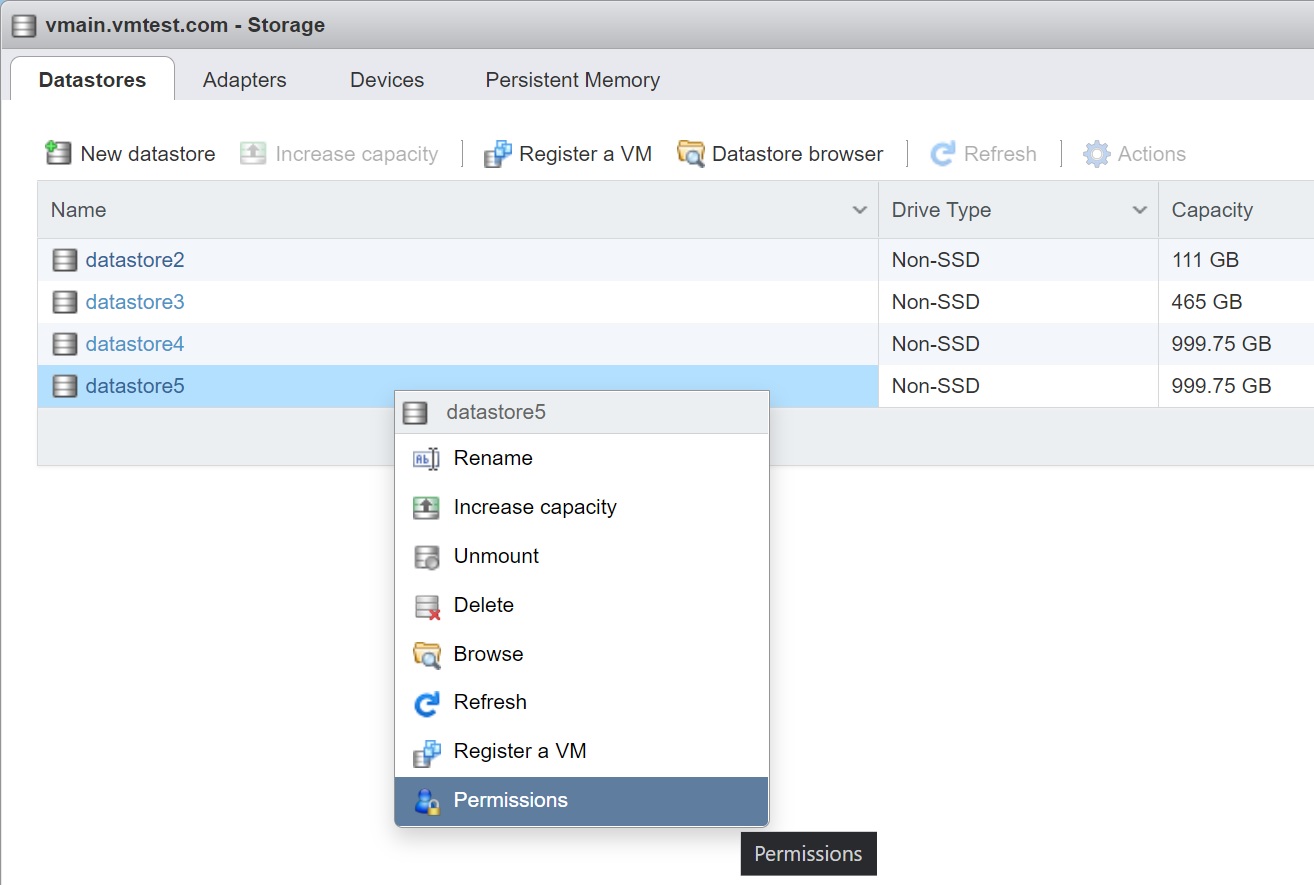 If you want to improve on security regarding the datastores, you can add permissions on those datastores, go to the datastore main screen, highlight the datastore and right-click and select permissions