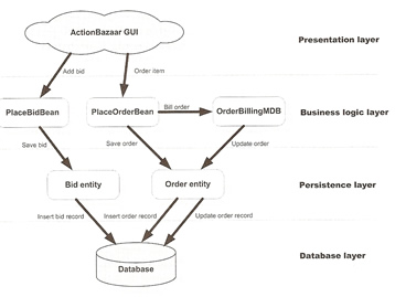Business logic and persistence components for the above set of actions can be implemented using EJB 3, the process can be visualized below within an EJB 3 architecture, but many other applications will use a very similar setup.