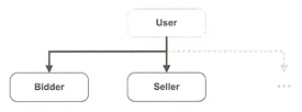 In this strategy the parent table contains columns common to all user types, the child table contains columns specific to the entity type (either bidder or seller in this case).
