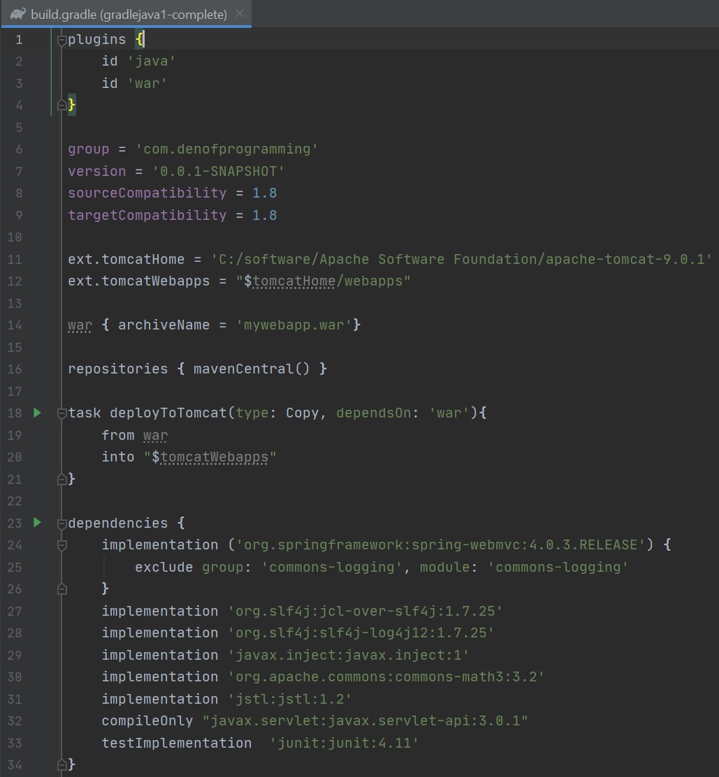 Again I am just going to cover an example web application Gradle build file and will only cover what I have not covered above already.