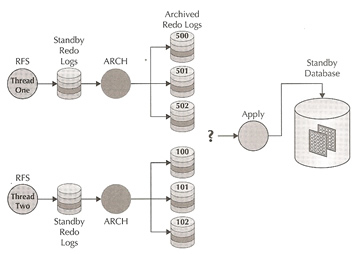 If you are using a protection mode that may result in data, the received archive redo logs are merged into a a single thread and the sequence is sorted on the dependant transaction, this merged thread is then applied to the standby database up until the last redo. This may take sometime if using a RAC environment as the redo data has to be transfers from each instance.