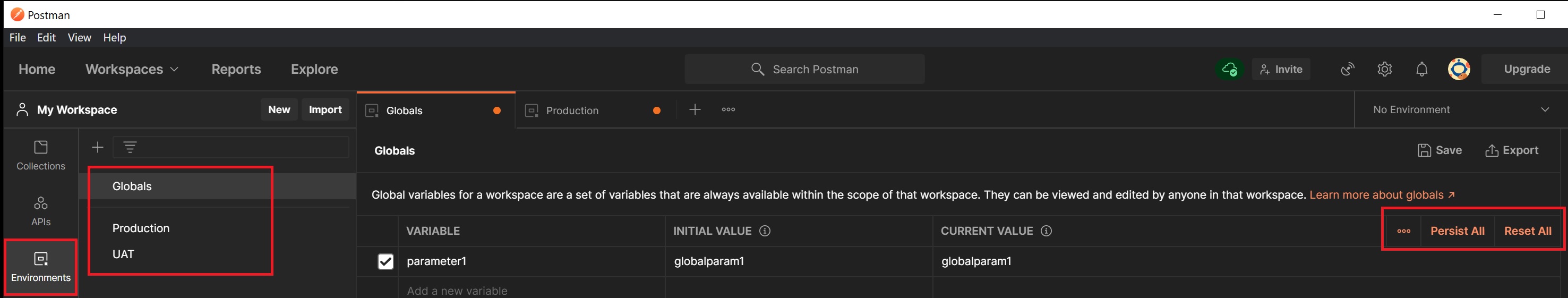 First we start with the very basic variable, as you know we can use parameters on the URL they are generally static and could be environment specific, in Postman we have the option to create global or environment specific variables.