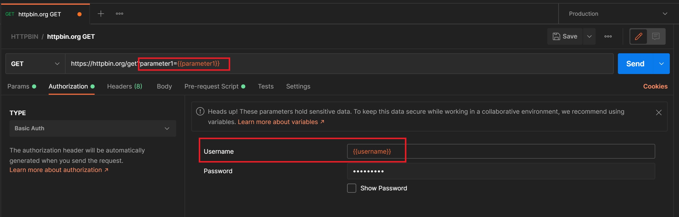 You can also use variables in other areas within Postman, for example in the below screenshot I am using it in the authorization section as a username, this is where those different environments come in handy.