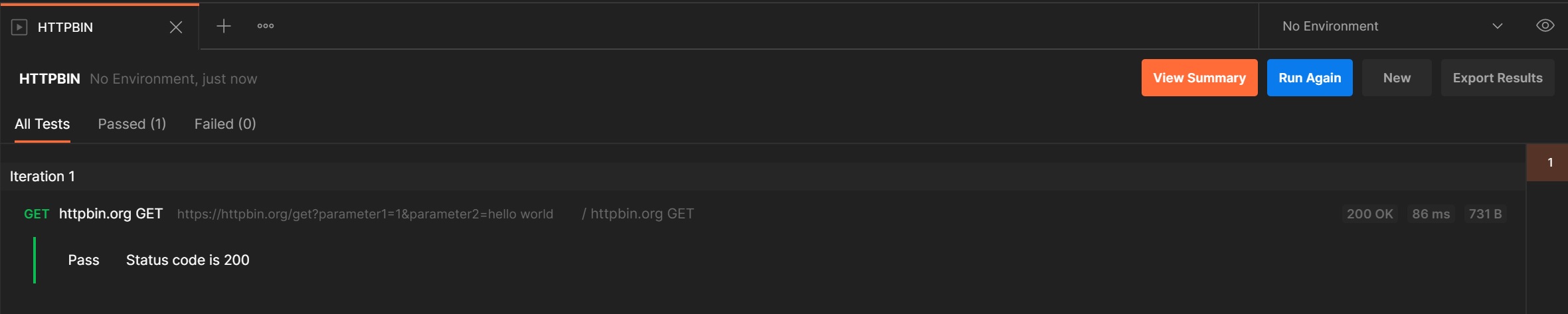 The runner screen has several options which I will leave you to play around with, if we select the Run HTTPBIN each request within the collection will be executedand any tests will then be displayed
