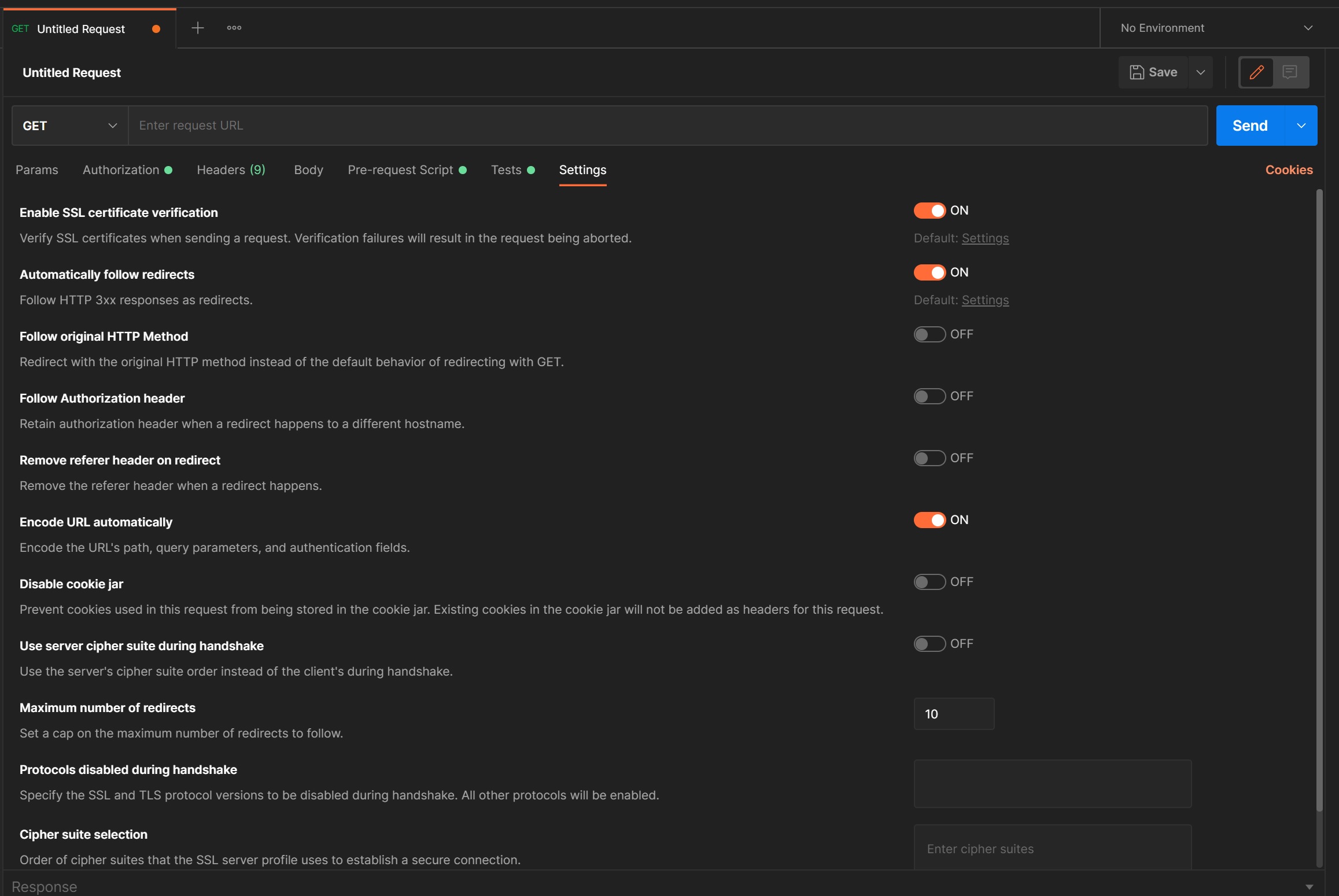 Lastly we have the settings page, there are a number of settings that you can either activate or deactivate, most of them are self explaining, sometimes you might need to disable (or not check) something during a test run