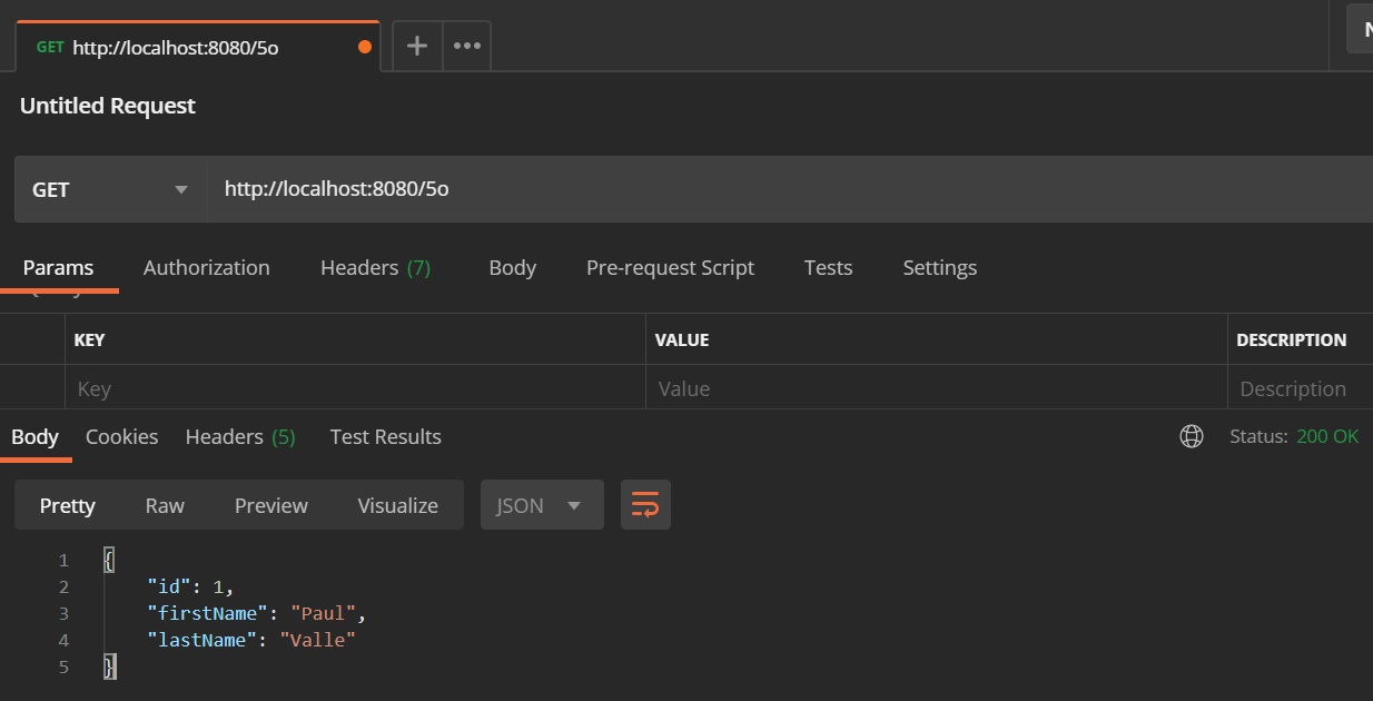 Next we look at the plain old method, this will only work when using @RestController as its provides the ResponseBody, Spring will also provide the status code and headers, this is ideal if you just want to send back some data and 200 status code.