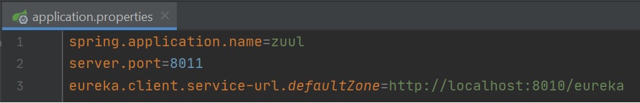 Next we update the properties file, we give the application a name and define the port that the service will run on, and add the URL of the Eureka Discovery Service.