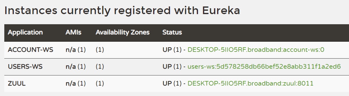 Now we can access a microservice via the Zuul Gateway using the URL http://localhost:8011/users-ws/users/status/check, we get a response back from the users-ws microservice.