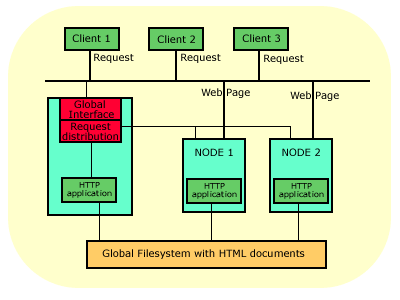 A scalable data service application is designed to distribute an application workload between two or more cluster nodes, as shown below