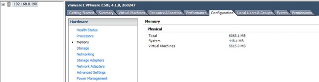 Here are some snapshots of my ESXi server setup, I will be going into greater details on how to setup networking, storage, etc for the time being here is quick summary on what I have. As you can see the server is dual core using a E6750 processor, the hardware is a HP DC 7800 desktop PC. It not very powerful but it is able to run a number of VM's simultaneously which will be handy when we start testing DRS.