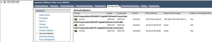 Lastly I have the NIC's, I have three network interfaces, one for the public network, one for the iSCSI network and a private network which will be used for vMotion, etc. Again I will go into greater detail in my network section.