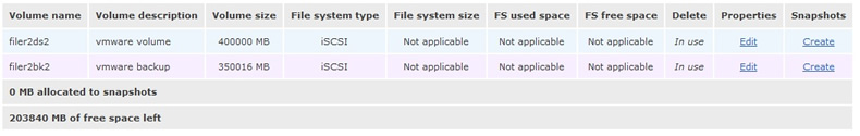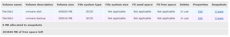 Disk two I have created two volumes filer2ds2 which will hold VM's and filer2bk2 which will be used for backing up VM's