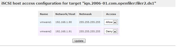 The last part is to allow access from the ESXi servers to your target, in this case I am allowing access from both ESXi servers to the filer2.ds1 target, which if you remember is the filer2ds1 volume.