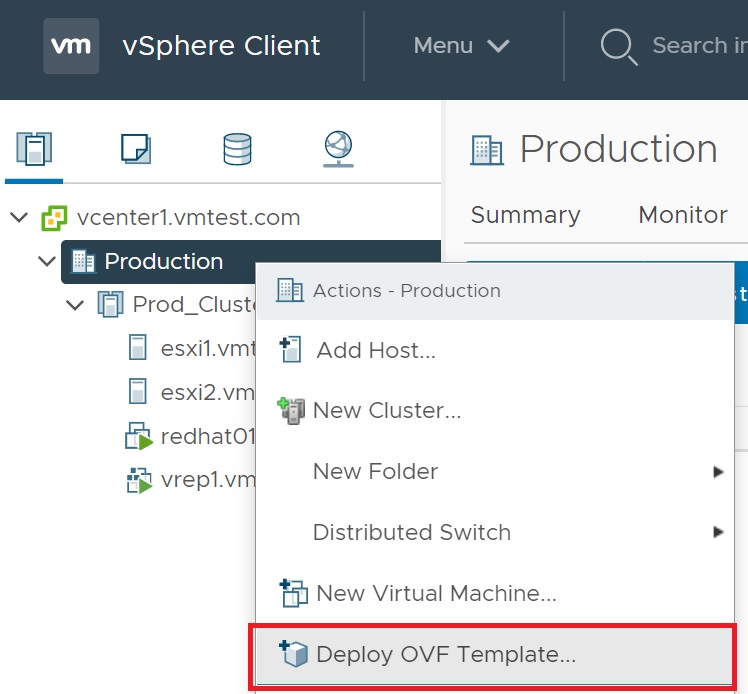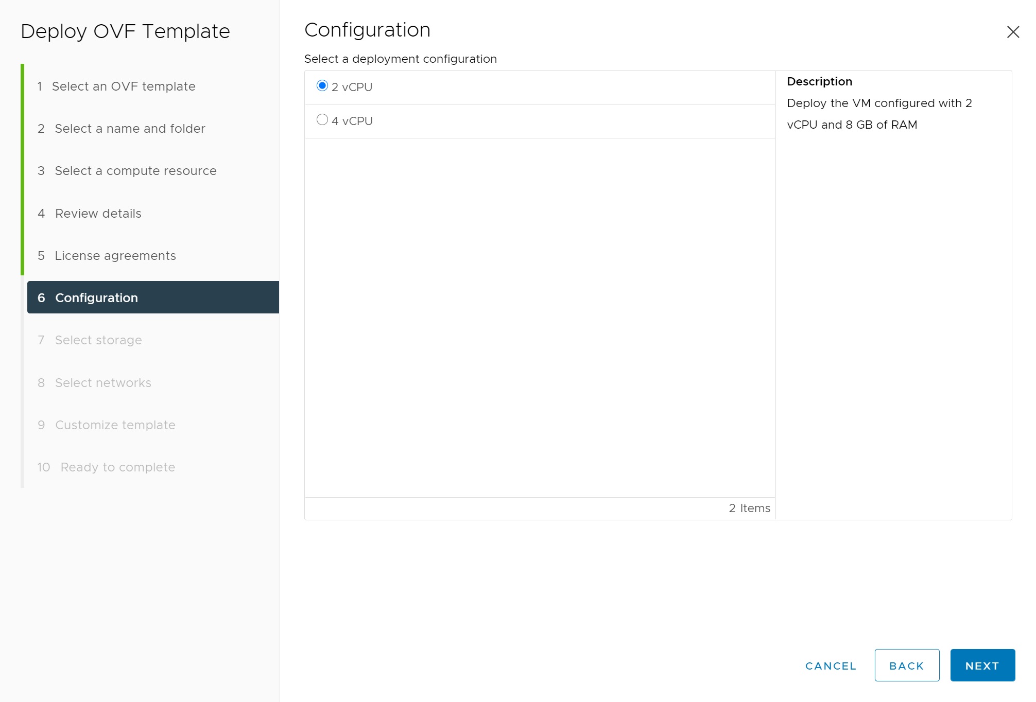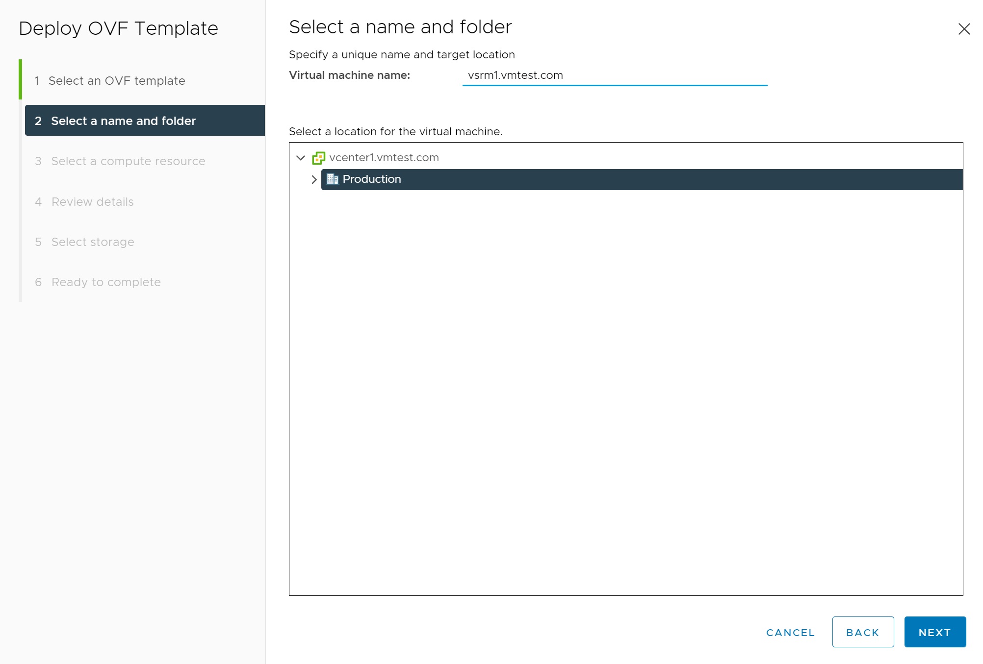 We use the vCenter server to install the OVF template, which takes us to a number of setup screens