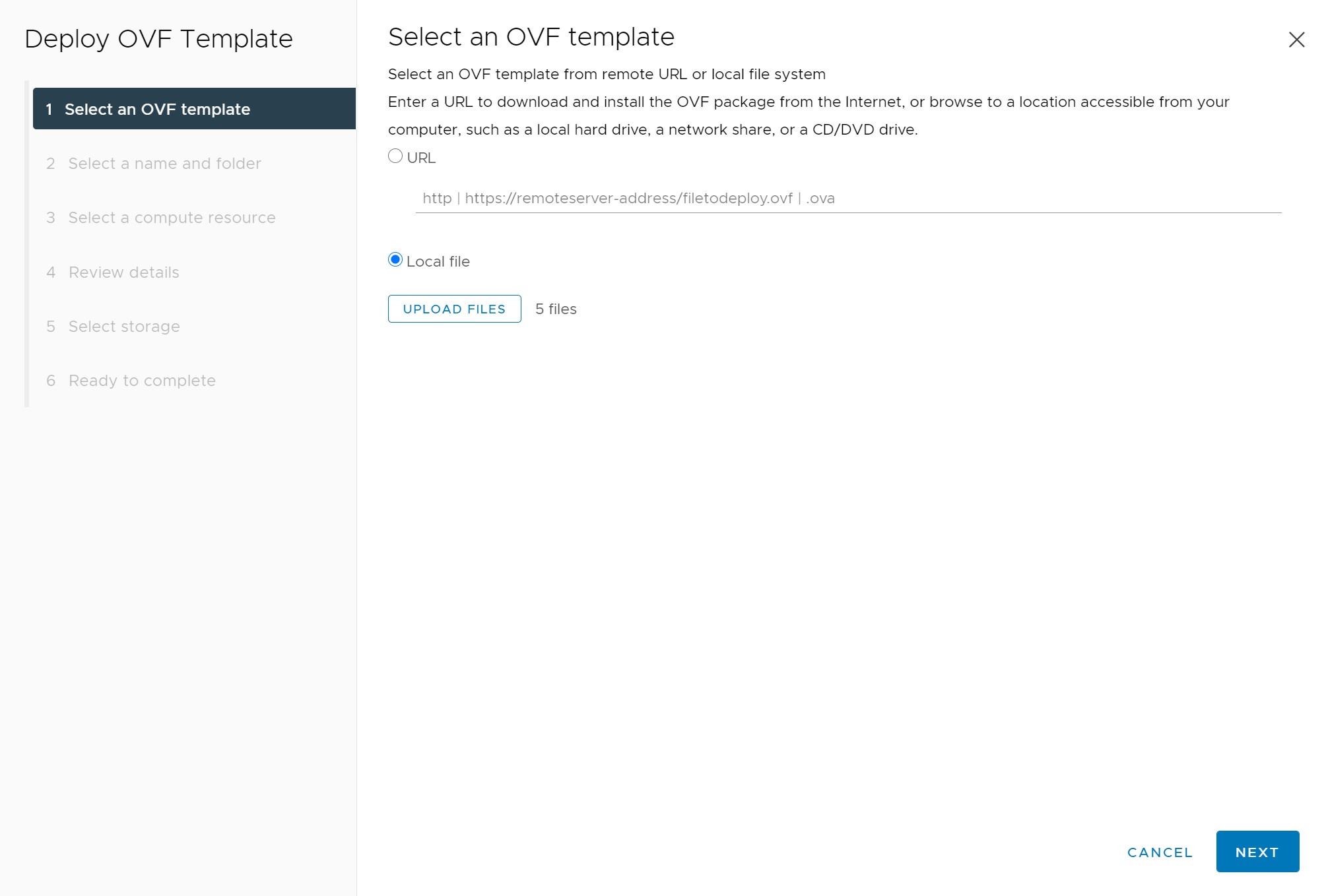 The first setup screen requires us to identify the OVF template files in the above screenshot.