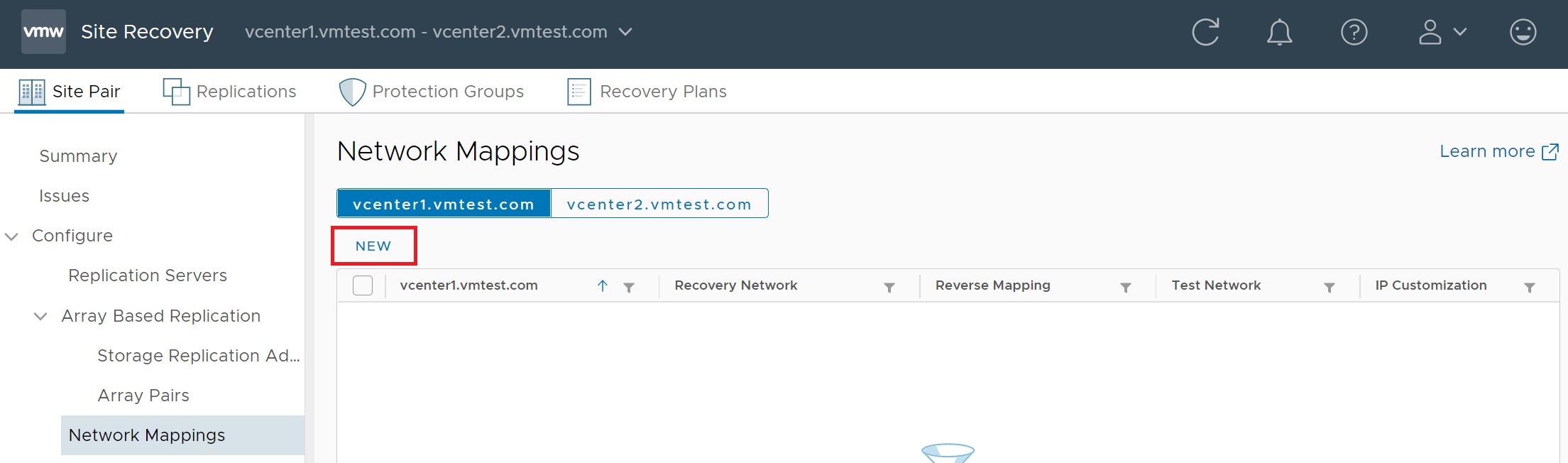 We start by configuring the network mappings, select the network mappings tab and then select NEW, we will be taken through a number of setup screens