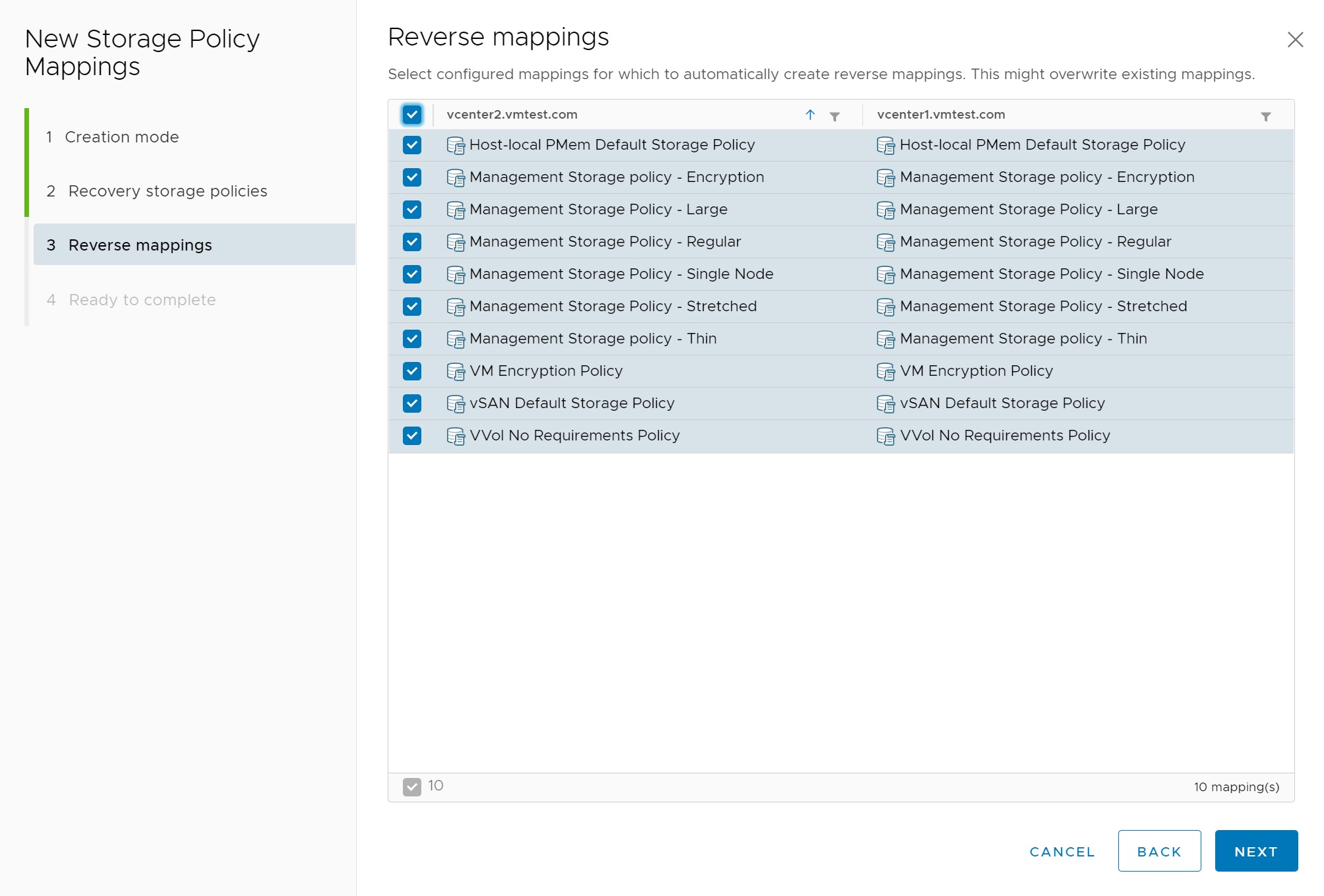 There are already a number of default storage polices that have been created, I select them all and then click on add mappings
