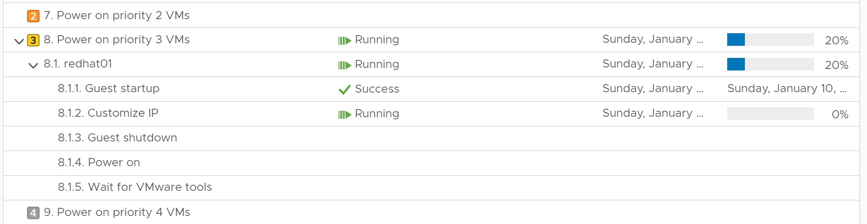 Returning back to the Recovery Plan -> Recovery Steps screen we can start to see the progress of the recovery to the other site.